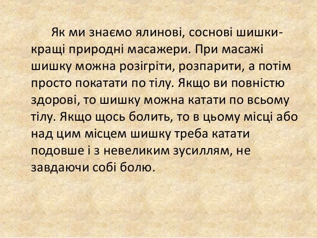 ми знаємо ялинові, соснові шишки- кращі природні масажери. При масажі шишку