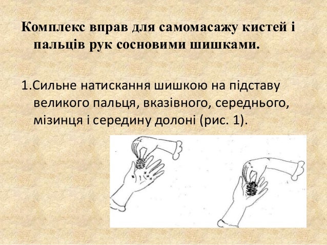 4 Комплекс вправ для самомасажу кистей і пальців рук сосновими шишками.
